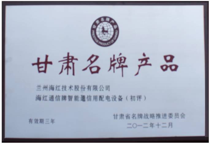 我公司“海紅通信牌智能通信用配電設(shè)備” 被評(píng)定為甘肅名牌產(chǎn)品