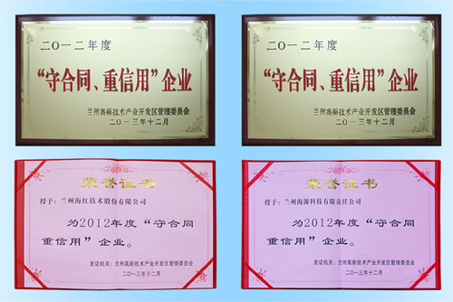 公司被評(píng)為2012年度甘肅省企業(yè)質(zhì)量信用等級(jí)AA級(jí)企業(yè)