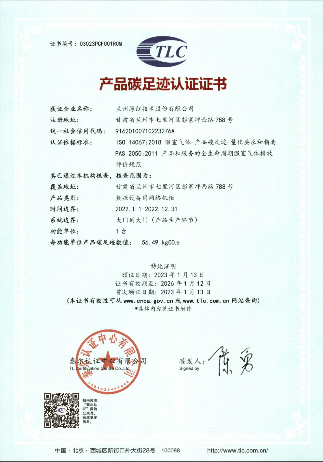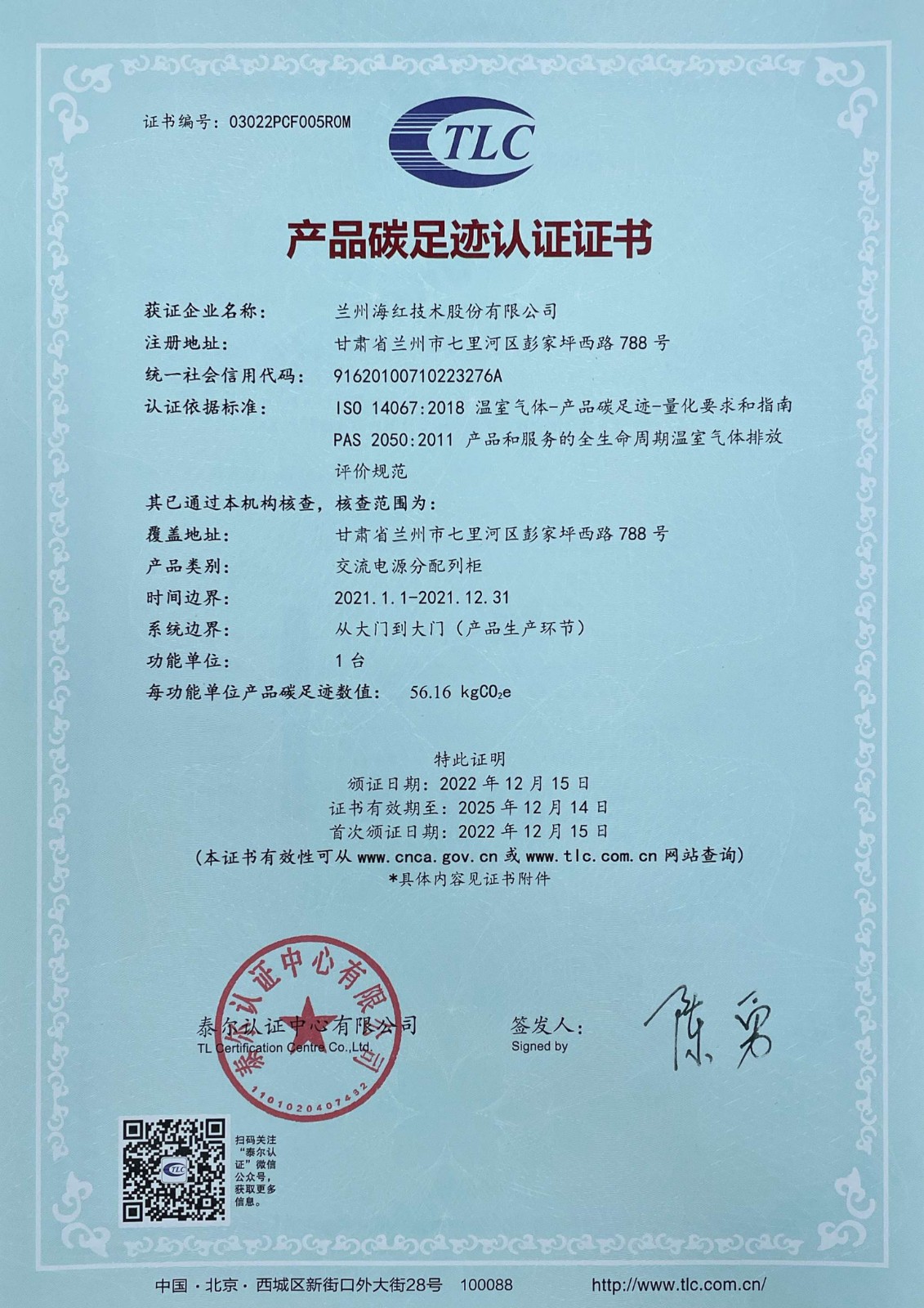 我司兩個產(chǎn)品取得“產(chǎn)品碳足跡認證證書”