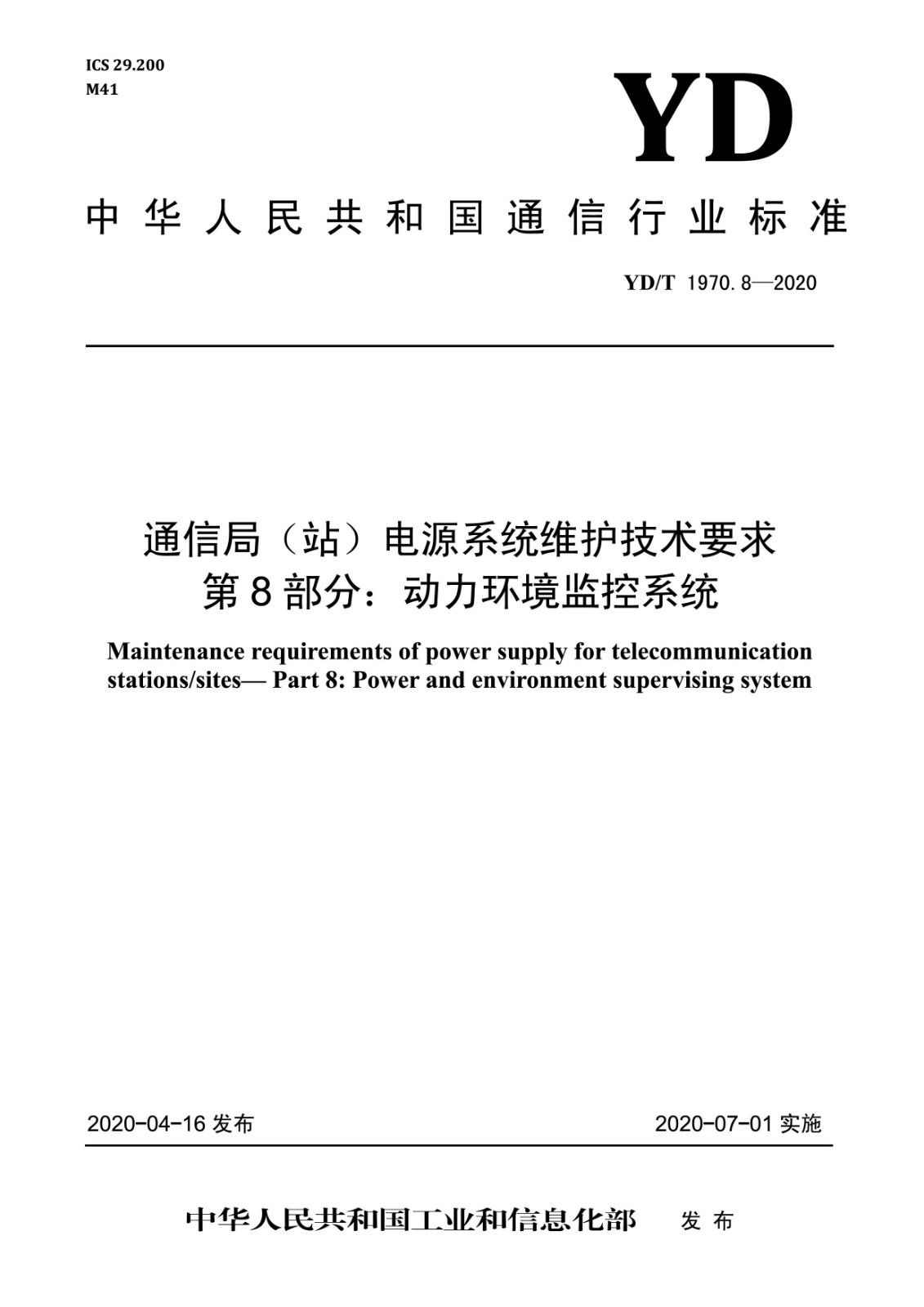我司參與起草的《通信局(站)電源系統(tǒng)維護(hù)技術(shù)要求 第 8 部分:動(dòng)力環(huán)境監(jiān)控系統(tǒng)》(YD/T 1970.8-2020)、《通信基站基礎(chǔ)設(shè)施技術(shù)要求第 4 部分:監(jiān)控系統(tǒng)》(YD/T...