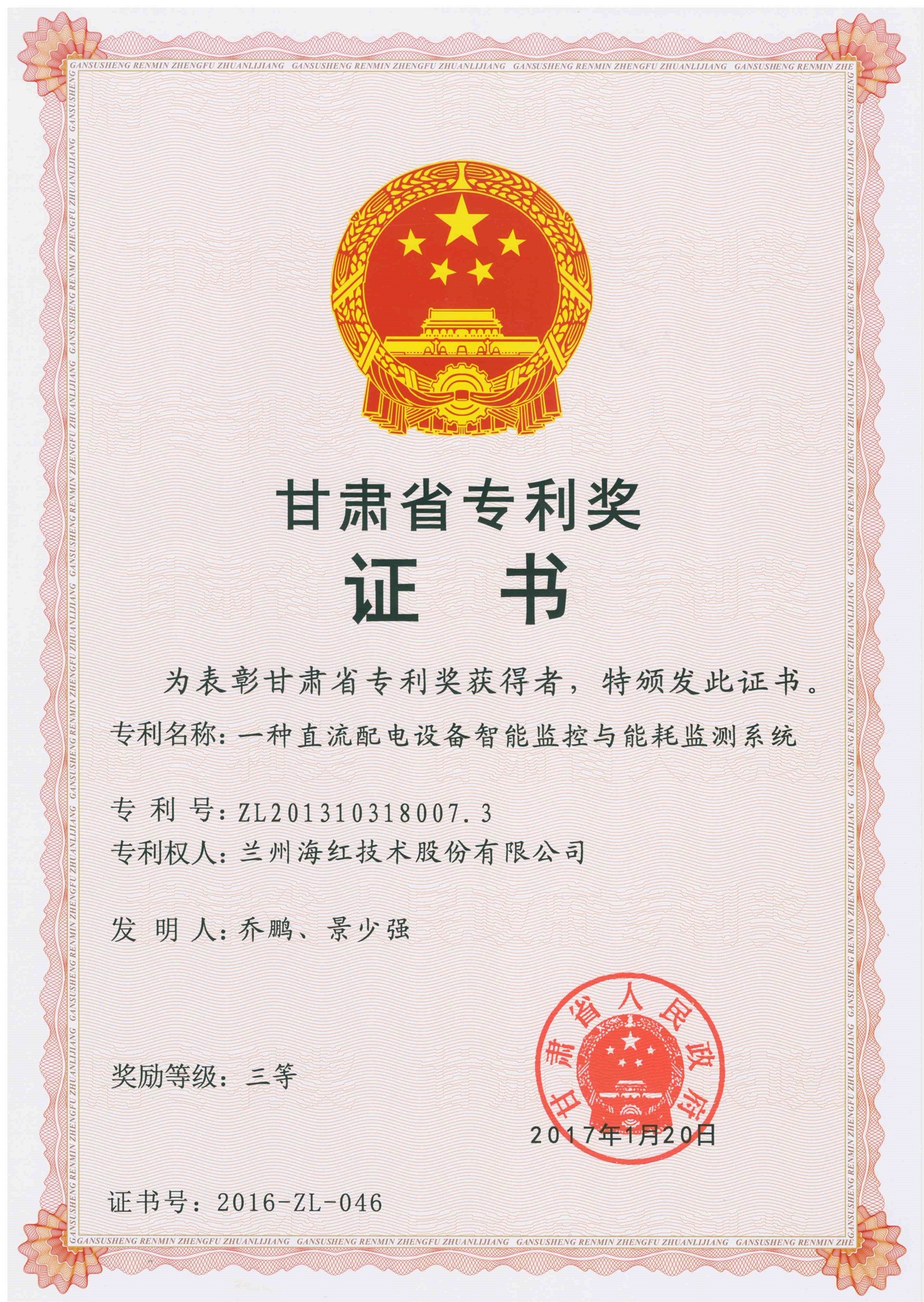 我公司“一種直流配電設(shè)備智能監(jiān)控與能耗監(jiān)測系統(tǒng)”發(fā)明專利榮獲甘肅省專利獎 By 海紅技術(shù) 2017-02-21 00:00:00 0次 上一篇:我公司榮獲2016年度“甘肅省人民政府質(zhì)量獎提名獎” 下一篇:我公司通過“兩化融合管理體系”評定,取得評定證書
