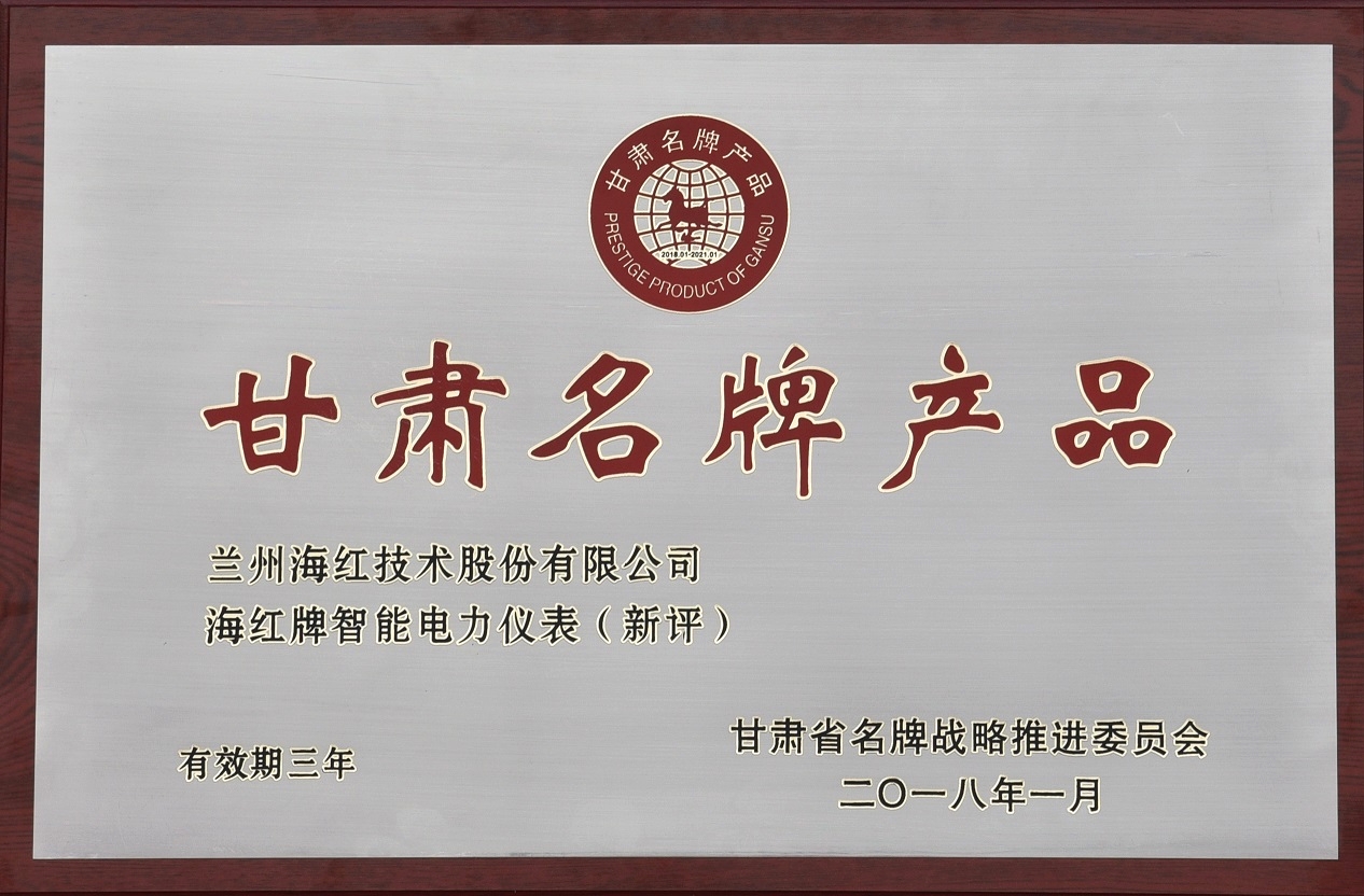 公司的“海紅牌智能電力儀表”產(chǎn)品被甘肅省人民政府評定為2017年“甘肅名牌產(chǎn)品”[《甘肅人民政府關(guān)于表彰2017年甘肅名牌產(chǎn)品企業(yè)的決定》(甘政發(fā)〔2018〕15號)文件],這是繼公司的“海紅通信牌智能通信用配電設(shè)備”產(chǎn)品連續(xù)兩次被評定為“甘肅名牌產(chǎn)品”之后的又一個獲得“甘肅名牌產(chǎn)品”稱號的產(chǎn)品,這充分體現(xiàn)了市場對公司產(chǎn)品質(zhì)量、品牌的認可。