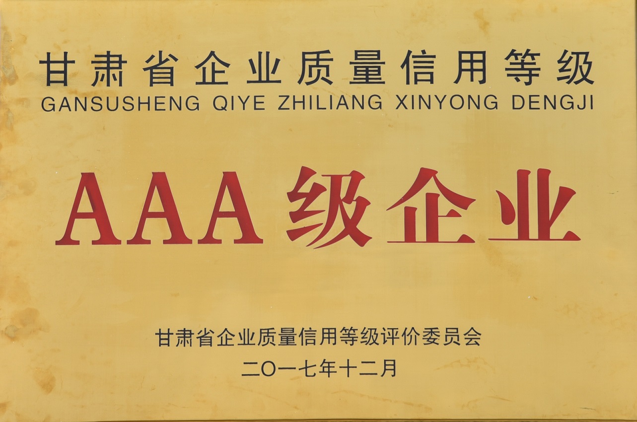 我公司被甘肅省企業(yè)質(zhì)量信用等級(jí)評(píng)價(jià)委員會(huì)認(rèn)定為甘肅省企業(yè)質(zhì)量信用等級(jí)AAA級(jí)企業(yè)。