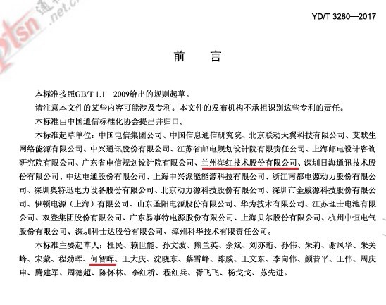 我公司參與起草的《網(wǎng)絡(luò)機(jī)柜用分布式電源系統(tǒng)》(YD/T 3280-2017)行業(yè)標(biāo)準(zhǔn)經(jīng)中華人民共和國工業(yè)和信息化部批準(zhǔn)發(fā)布,已于2018年01月01日正式實(shí)施。我公司技術(shù)中心研發(fā)部工程師何智暉參與了該標(biāo)準(zhǔn)的起草。該標(biāo)準(zhǔn)是繼《通信電源和機(jī)房環(huán)境節(jié)能技術(shù)指南 第5部分:氣流組織》標(biāo)準(zhǔn)之后,第二個我司參與起草正式出版的行業(yè)標(biāo)準(zhǔn)。