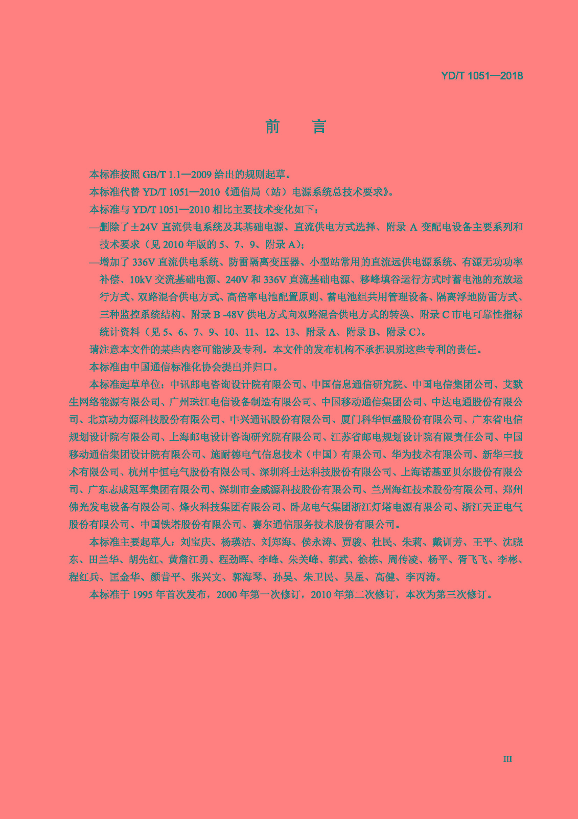 我司參與起草的《通信局(站)電源系統(tǒng)總技術(shù)要求》(YD/T 1051-2018)行業(yè)標(biāo)準(zhǔn)經(jīng)中華人民共和國工業(yè)和信息化部批準(zhǔn)發(fā)布,已于2019年04月01日實施。我司技術(shù)中心研發(fā)部工程師張興文參與了該標(biāo)準(zhǔn)的起草。該標(biāo)準(zhǔn)是繼《通信電源和機房環(huán)境節(jié)能技術(shù)指南 第5部分:氣流組織》、《網(wǎng)絡(luò)機柜用分布式電源系統(tǒng)》、《通信電源和機房環(huán)境節(jié)能技術(shù)指南 第2部分:應(yīng)用條件》、《通信用240V直流供電系統(tǒng)使用技術(shù)要求》四項標(biāo)準(zhǔn)之后,由我司參與起草正式出版的第5項行業(yè)標(biāo)準(zhǔn)。