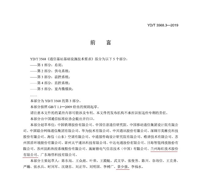 我司參與起草的行業(yè)標(biāo)準(zhǔn)《通信基站基礎(chǔ)設(shè)施技術(shù)要求 第3部分:溫控系統(tǒng)》已正式出版