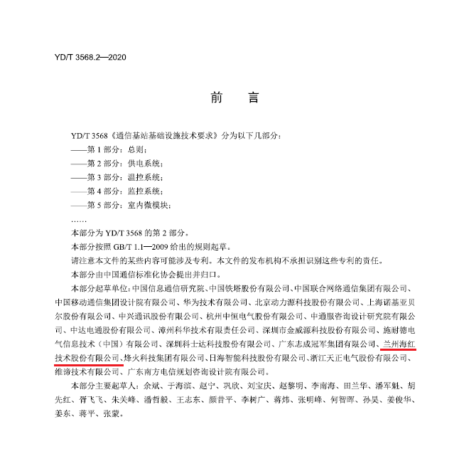 我司參與起草的《通信基站基礎(chǔ)設(shè)施技術(shù)要求 第1部分:總則》(YD/T 3568.1-2020)、《通信基站基礎(chǔ)設(shè)施技術(shù)要求 第2部分:供電系統(tǒng)》(YD/T 3568.2-2020)兩項行業(yè)標準經(jīng)中華人民共和國工業(yè)和信息化部批準發(fā)布,已于2020年07月01日實施。以上標準是繼《通信電源和機房環(huán)境節(jié)能技術(shù)指南第5部分:氣流組織》、《網(wǎng)絡(luò)機柜用分布式電源系統(tǒng)》、《通信電源和機房環(huán)境節(jié)能技術(shù)指南 第2部分:應(yīng)用條件》、《通信用240V直流供電系統(tǒng)使用技術(shù)要求》、《通信局(站)電源系統(tǒng)總技術(shù)要求》、《通信用240V/336V直流配電單元》、《通信機房用光纖槽道》、《通信基站基礎(chǔ)設(shè)施技術(shù)要求 第3部分:溫控系統(tǒng)》八項標準之后,由我司參與起草正式出版的第9項、第10項行業(yè)標準。