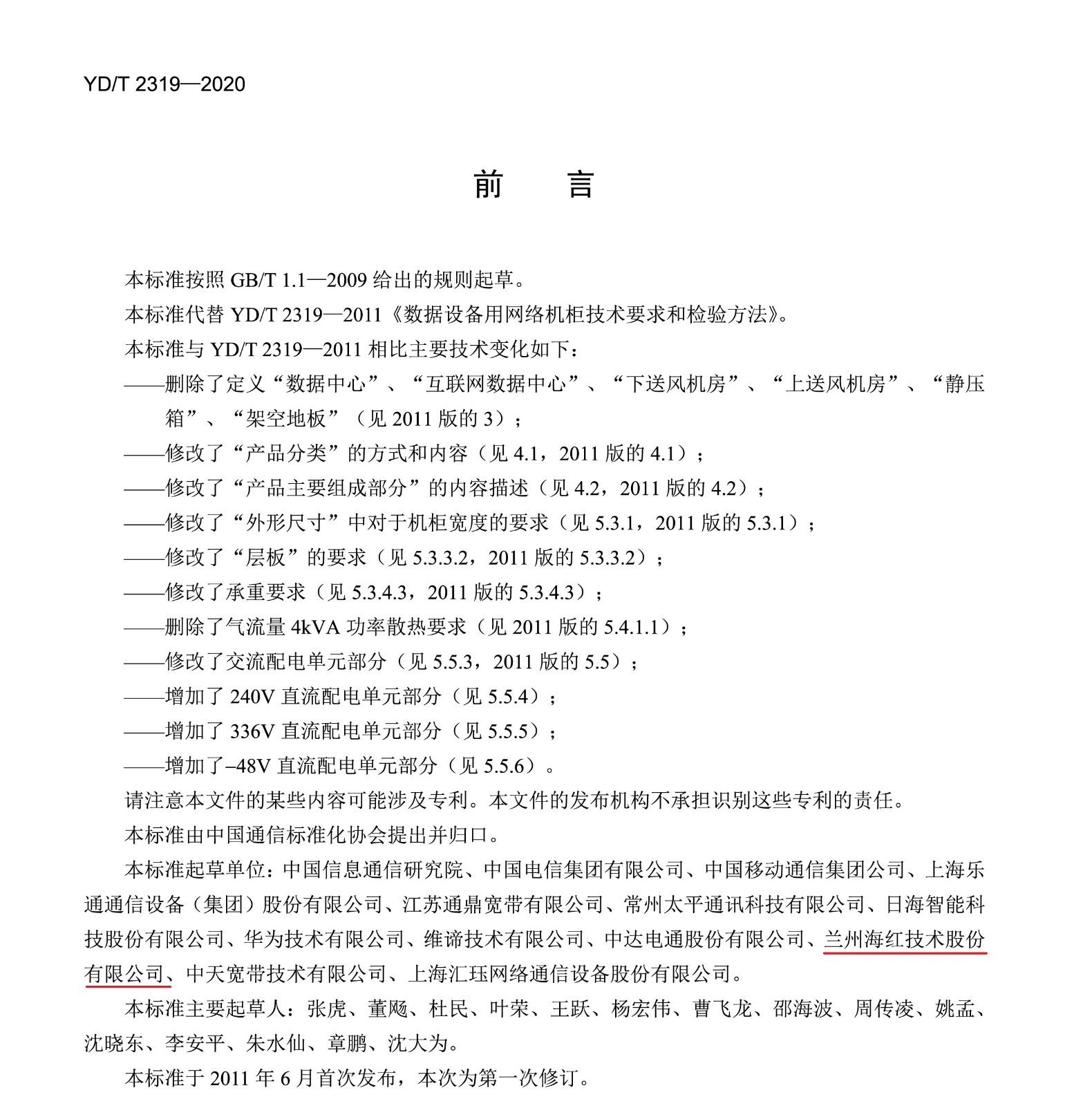 我司參與修訂的行業(yè)標(biāo)準(zhǔn)《數(shù)據(jù)設(shè)備用網(wǎng)絡(luò)機柜》正式出版