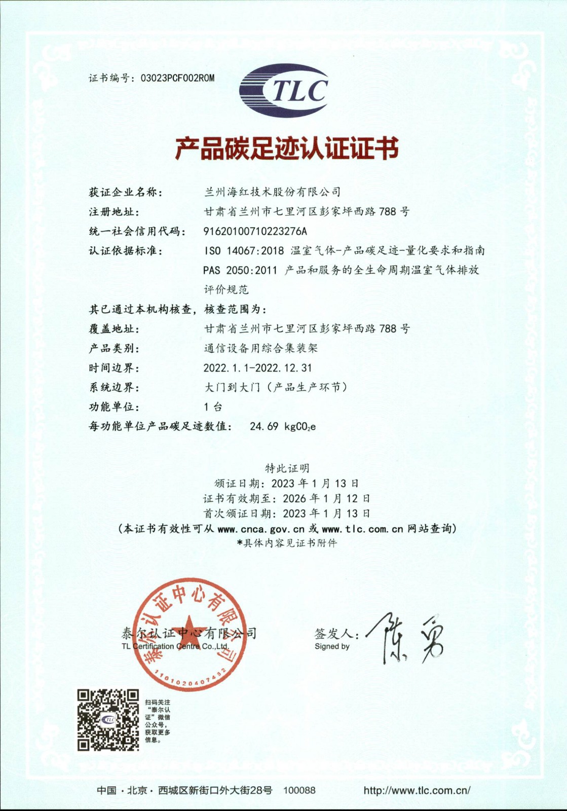 我司兩個(gè)產(chǎn)品取得“產(chǎn)品碳足跡認(rèn)證證書”