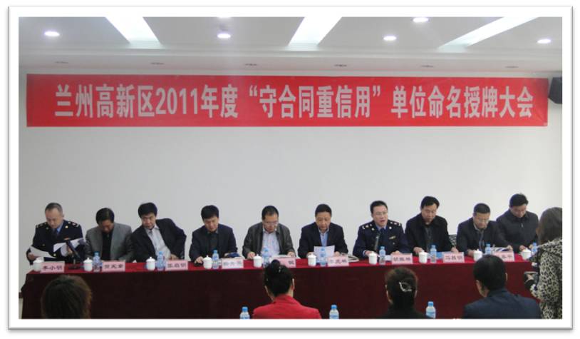 會(huì)議當(dāng)天,蘭州高新區(qū)主要領(lǐng)導(dǎo)對(duì)所有“守合同、重信用”企業(yè)進(jìn)行授牌。我公司行政人資中心總經(jīng)理焦旭麗作為3家企業(yè)代表之一,在現(xiàn)場(chǎng)做了守重工作匯報(bào)及交流。高新區(qū)管委會(huì)主任李虎林在會(huì)議上強(qiáng)調(diào),企業(yè)信用建設(shè)是一項(xiàng)長(zhǎng)期的工作,任重道遠(yuǎn),要堅(jiān)持以科學(xué)發(fā)展觀為指導(dǎo),踏實(shí)工作,開(kāi)拓創(chuàng)新,切實(shí)加強(qiáng)企業(yè)信用體系建設(shè),為把蘭州高新區(qū)建成促進(jìn)全市經(jīng)濟(jì)社會(huì)率先跨越發(fā)展的重要戰(zhàn)略支點(diǎn)做出新的貢獻(xiàn)。